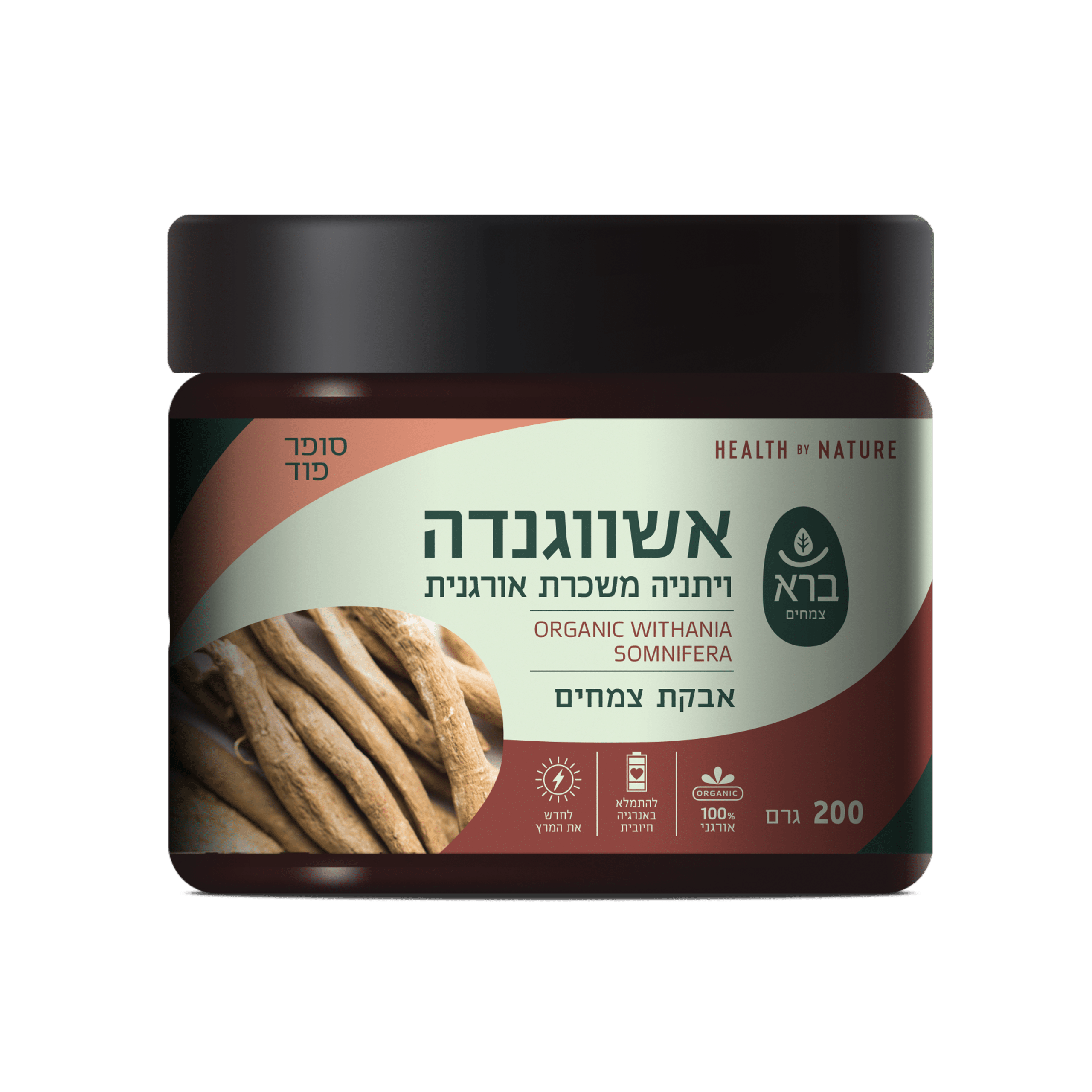 אבקת אשווגנדה ויתניה משכרת אורגנית סדרת סופר פוד - ברא
