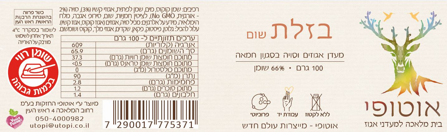 בזלת שום - מעדן אגוזים וסויה בסגנון חמאה - 66% שומן