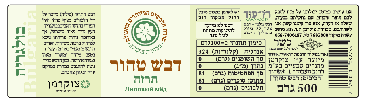 דבש התרזה (טיליה) מיוצר ע"י הדבורים מצוף פרחי העץ הפורח בחודשי האביב בבולגריה.
