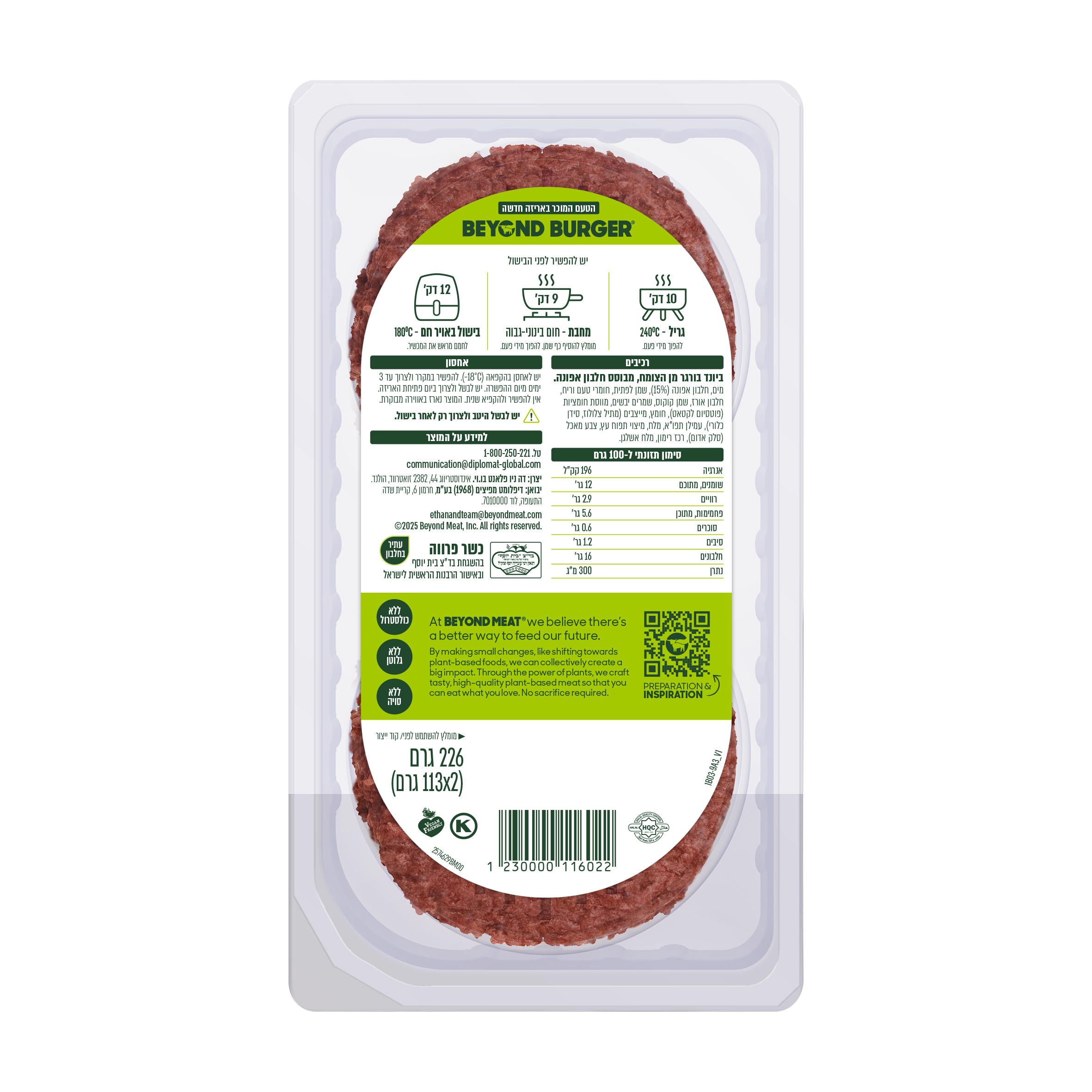 רכיבים: מים, חלבון אפונה* (15%), שמן לפתית, חומרי טעם וריח, חלבון אורז, שמן קוקוס, שמרים יבשים, חומר משמר (פוטסיום לקטאט), חומץ, מייצבים (מתיל צלולוז, קצליום כלוריד), עמילן תפו"א, מלח, מיצוי תפוח עץ, צבע מאכל (סלק אודם), רכז רימון, מלח אשלגן.