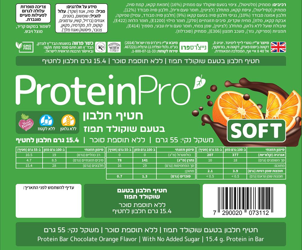 משקל נקי: 55 גרם | ללא תוספת סוכר | 15.4 גרם חלבון לחטיף