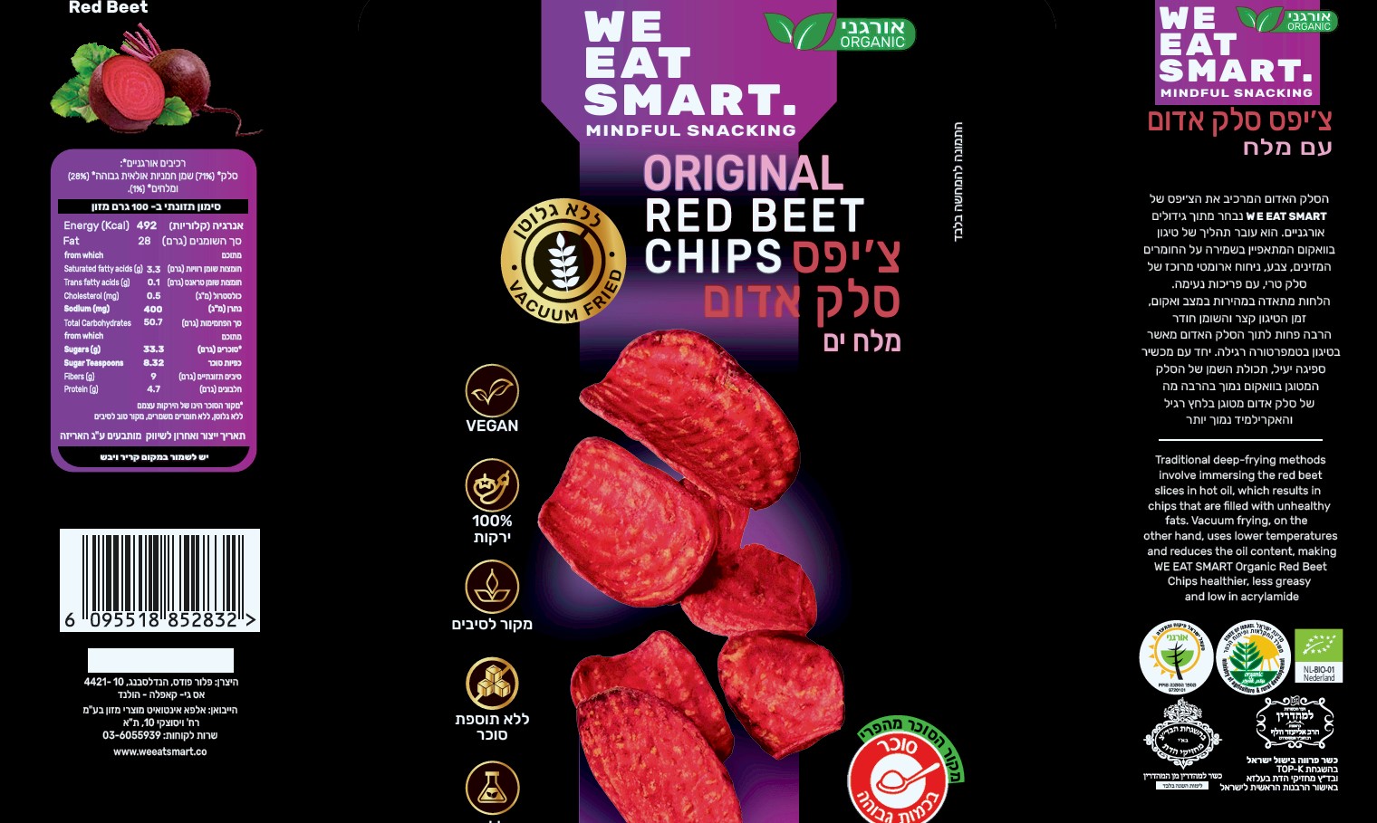 הסלק האדום המרכיב את הצ'יפס של WE EAT SMART נבחר מתוך גידולים אורגניים.