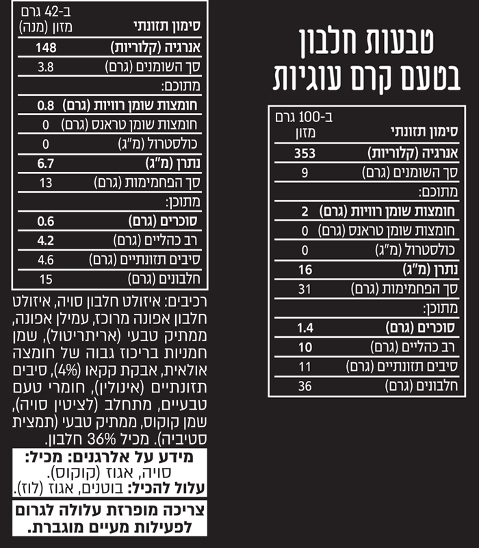 מידע על אלרגנים: מכיל סויה, אגוז (קוקוס).
