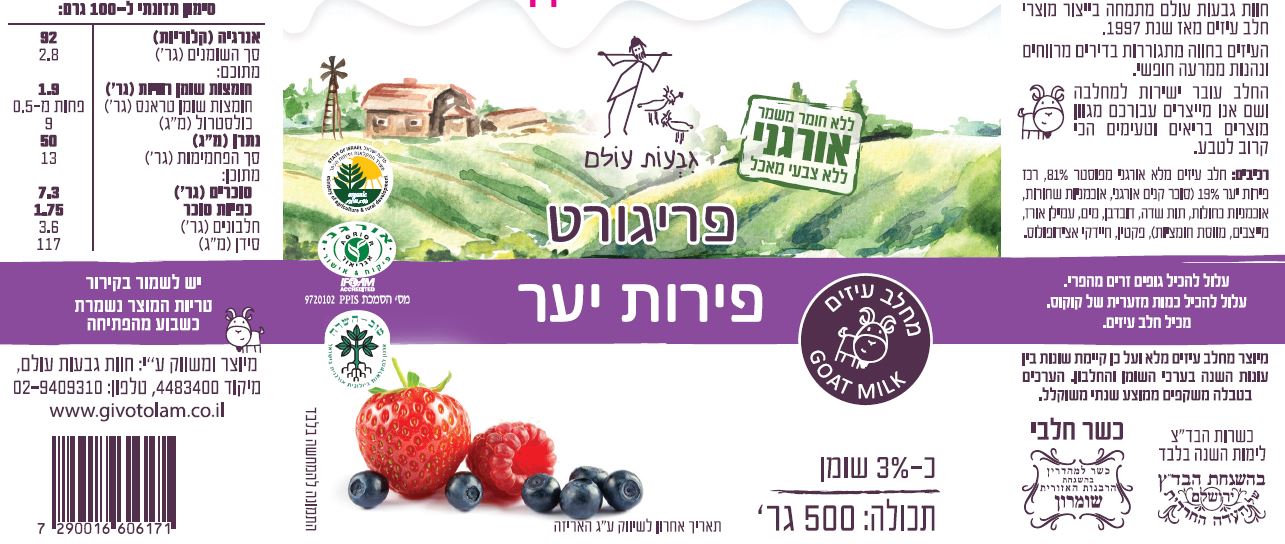 יוגורט פריגורט מחלב עזים מלא פירות יער 3% שומן