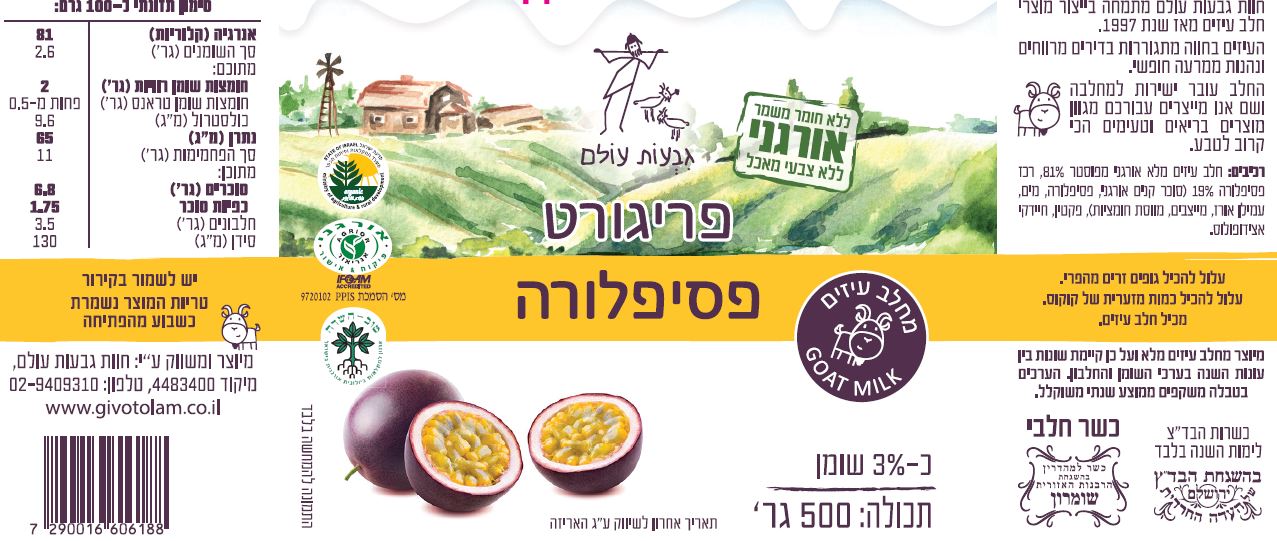 יוגורט פריגורט מחלב עזים מלא בטעם פסיפלורה 3% שומן