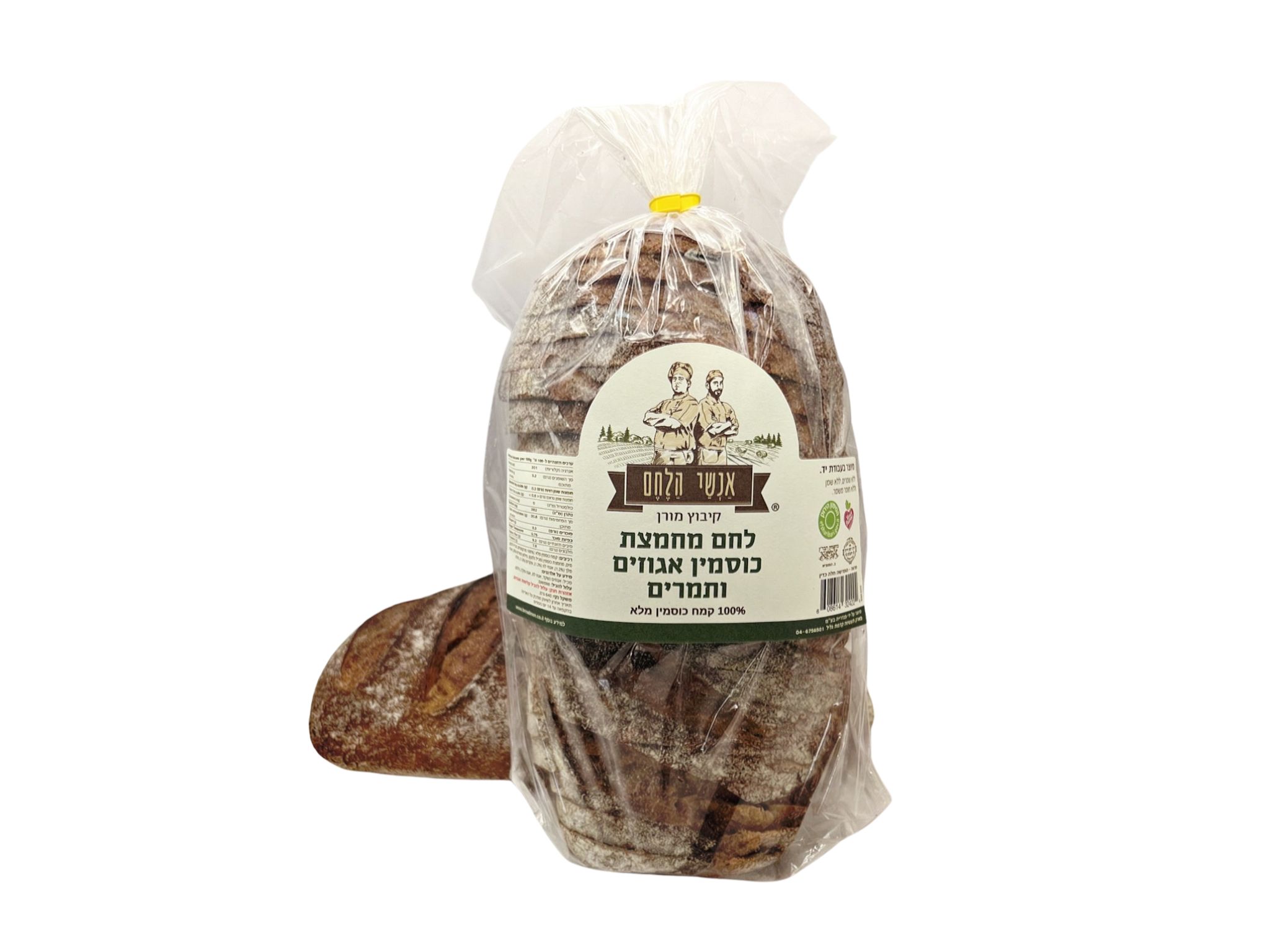 רכיבים: קמח כוסמין מלא (100% מהקמחים, מכיל גלוטן), מים, מחמצת כוסמין (מכיל גלוטן), סילאן תמרים (3%), אגוזי מלך (1.3%), אגוזי לוז (1.3%), שקדים (1.3%), מלח.