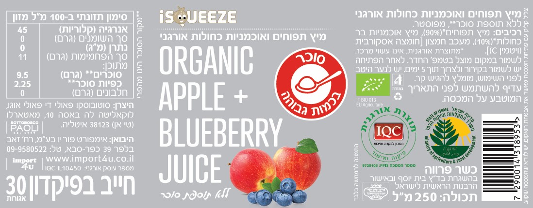 מיץ תפוחים ואוכמניות כחולות אורגני