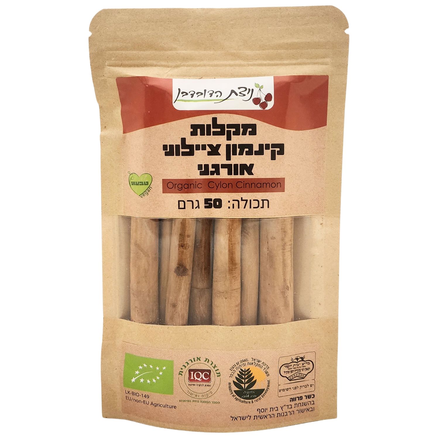 מקלות קינמון ציילוני אורגני - ניצת הדובדבן 50 גרם