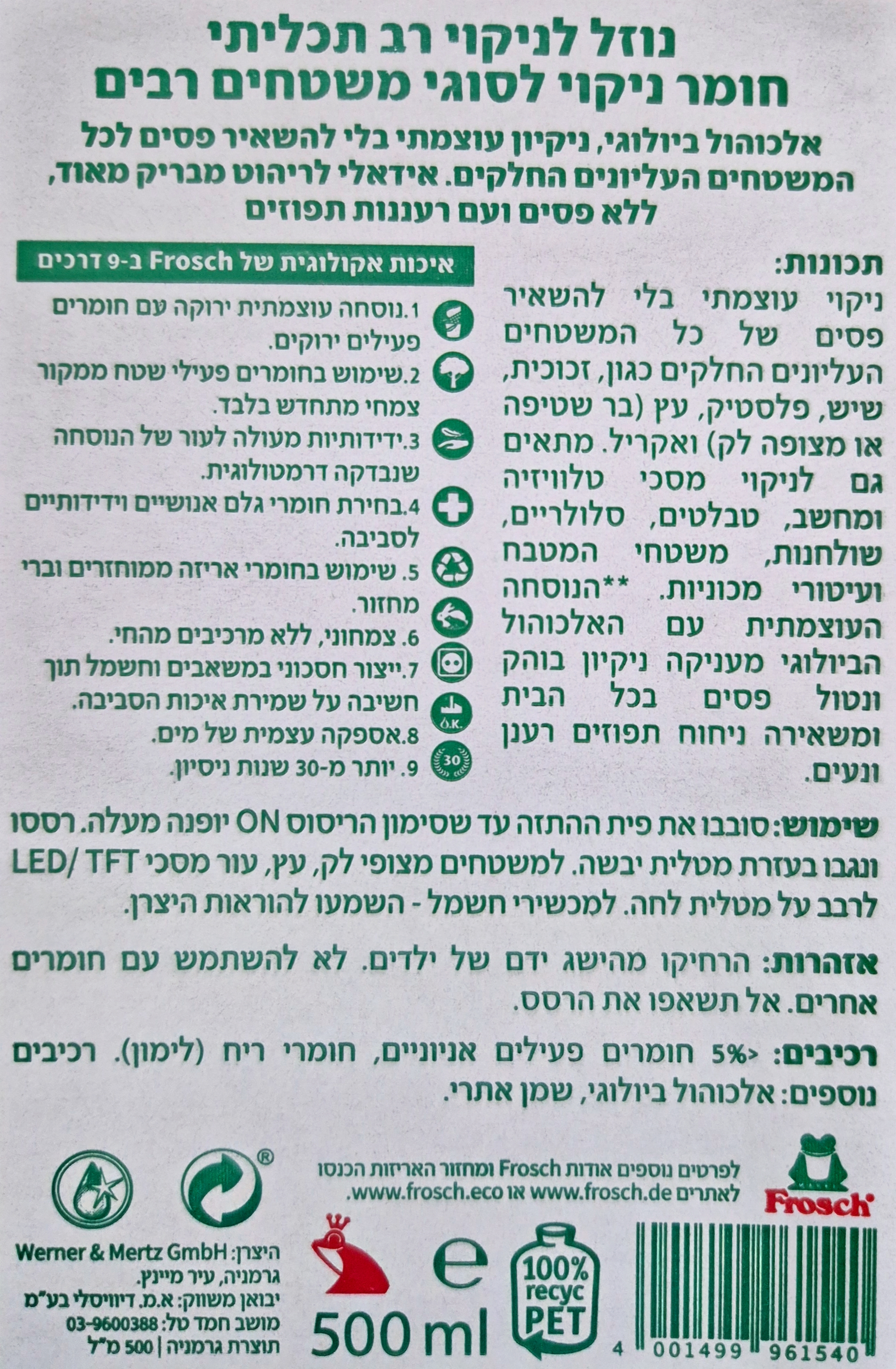 מכיל אלכוהול ביולוגי לניקוי עוצמתי ללא השארת פסים.