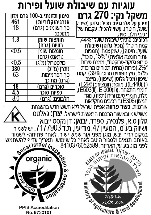 עוגיות עם שיבולת שועל ופירות אורגני - גולון