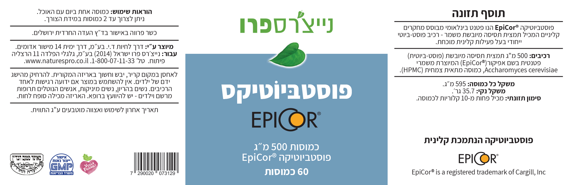 כמוסות 500 מ"ג פוסטביוטיקה Epicor