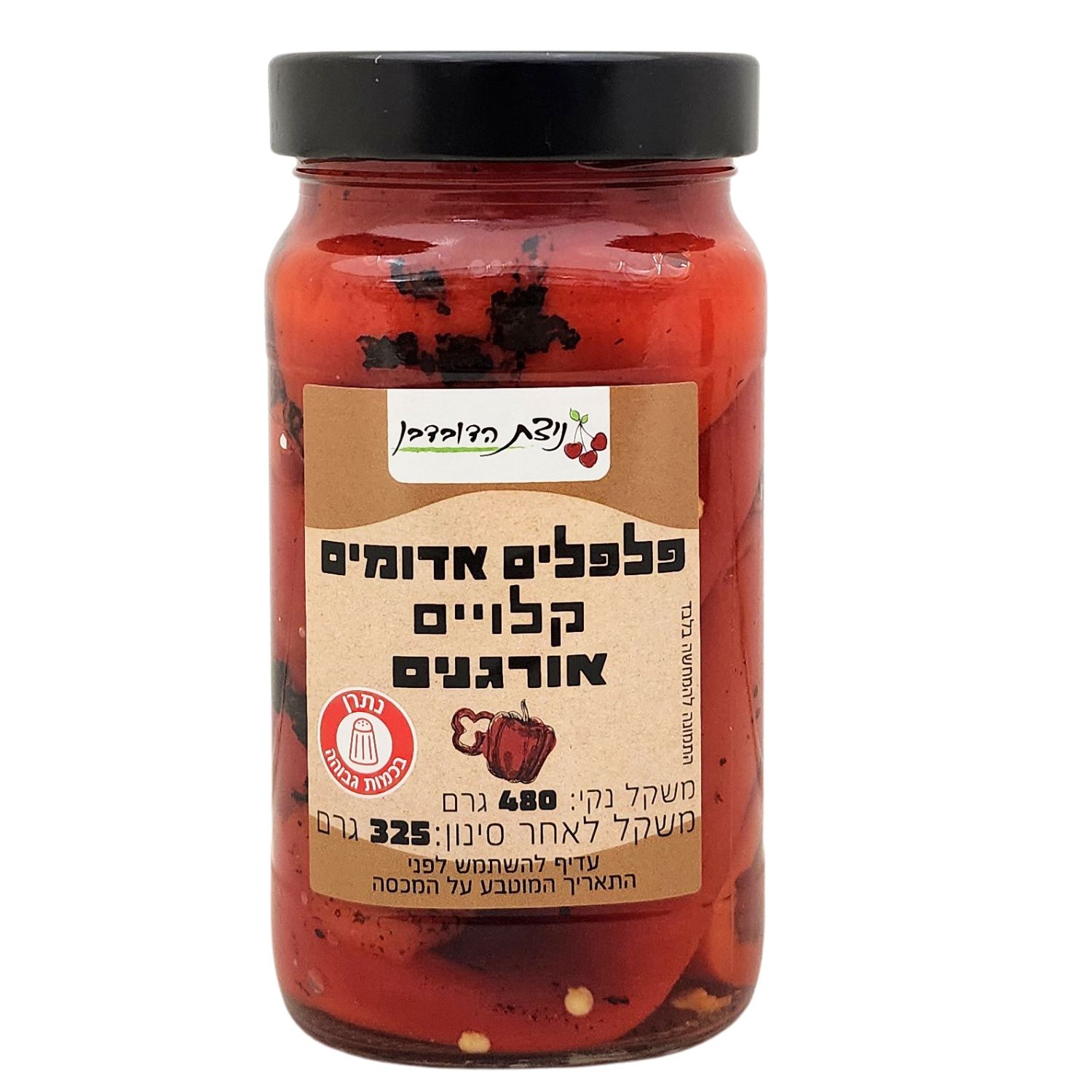 פלפלים אדומים קלויים אורגנים בצנצנת - ניצת הדובדבן