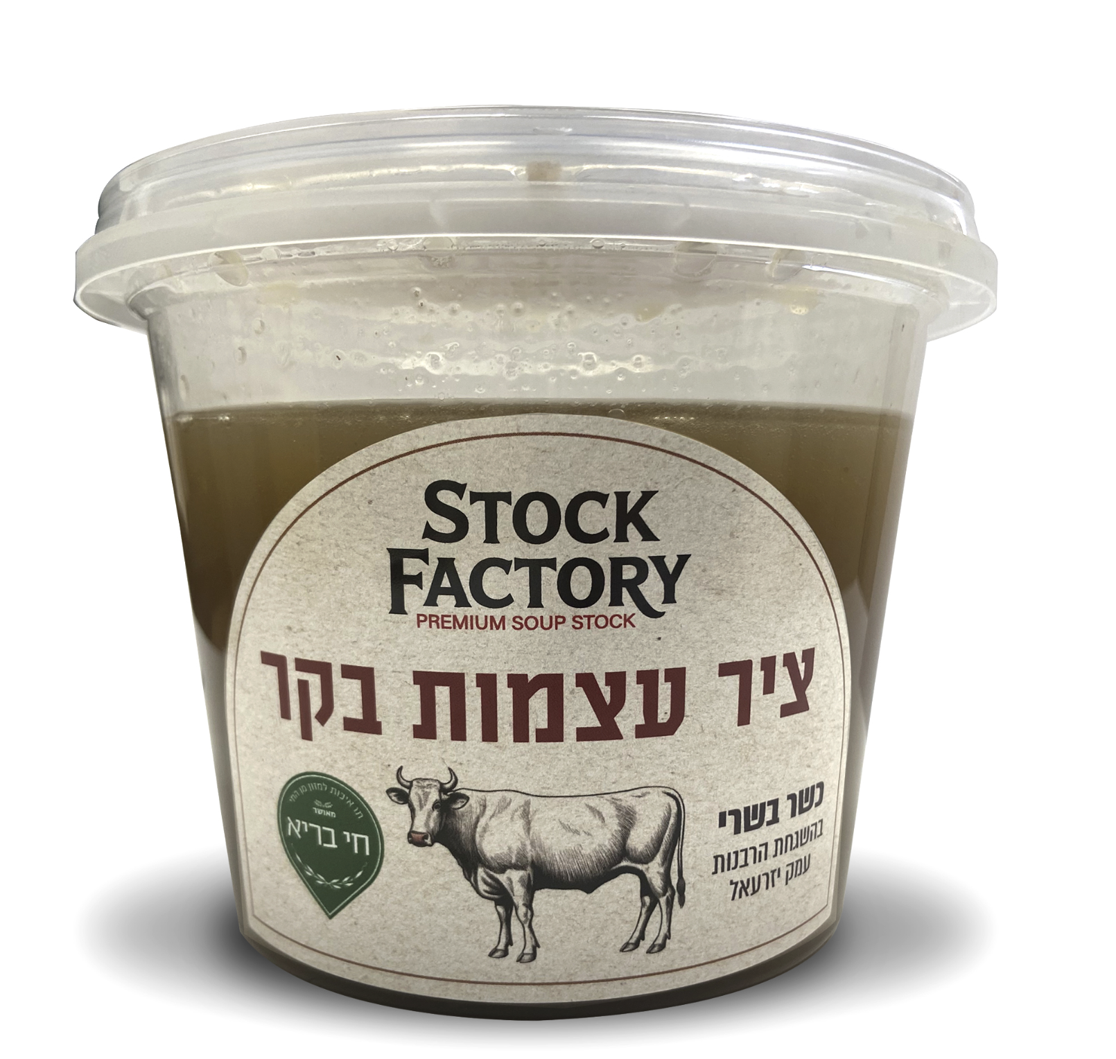 מרק עצמות מבקר שגדל במרעה חופשי ברמת הגולן. ללא אנטיביוטיקה מניעתית וזרזי גדילה.
