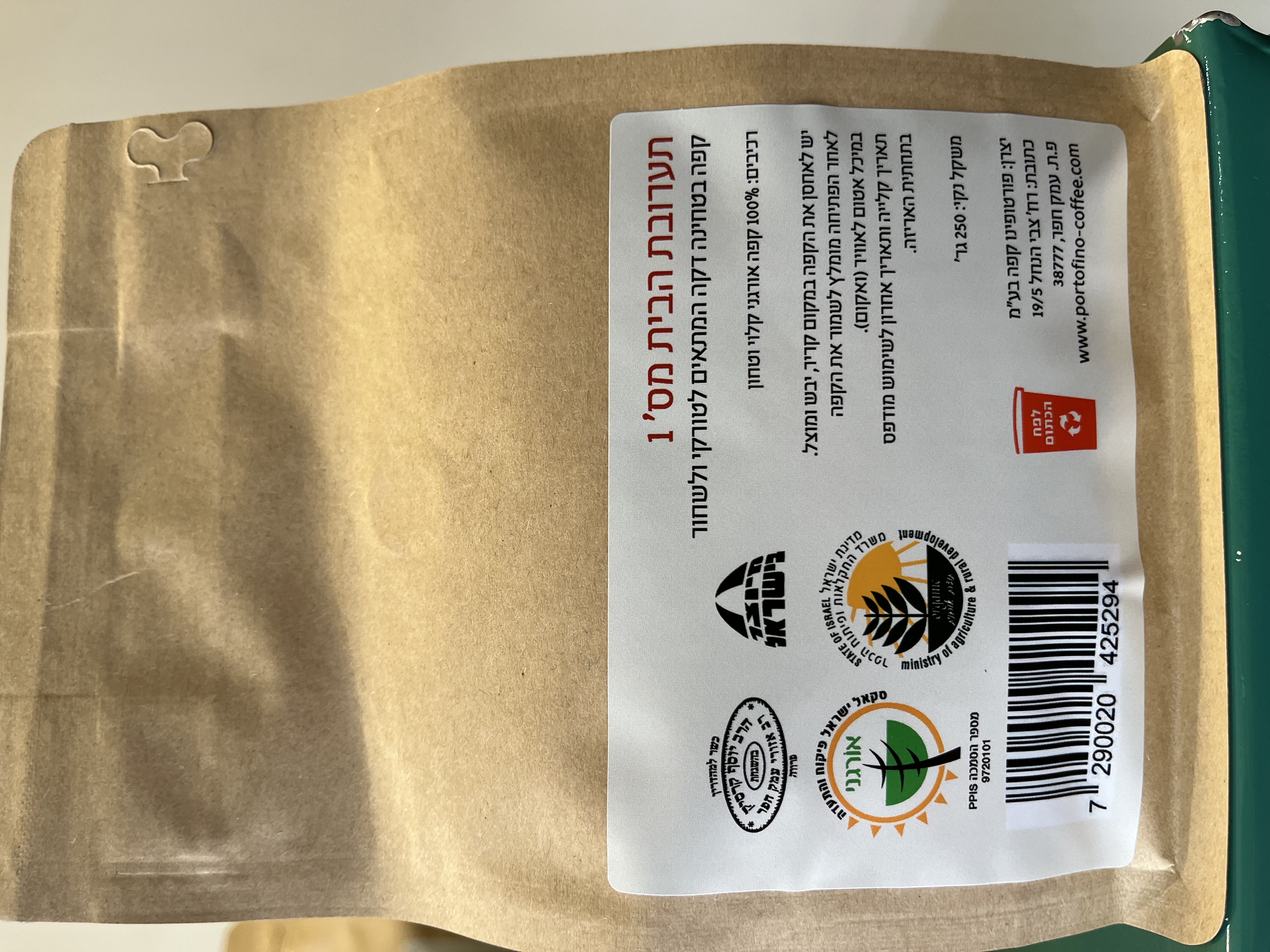 רכיבים: 100% קפה ערביקה אורגני קלוי וטחון.