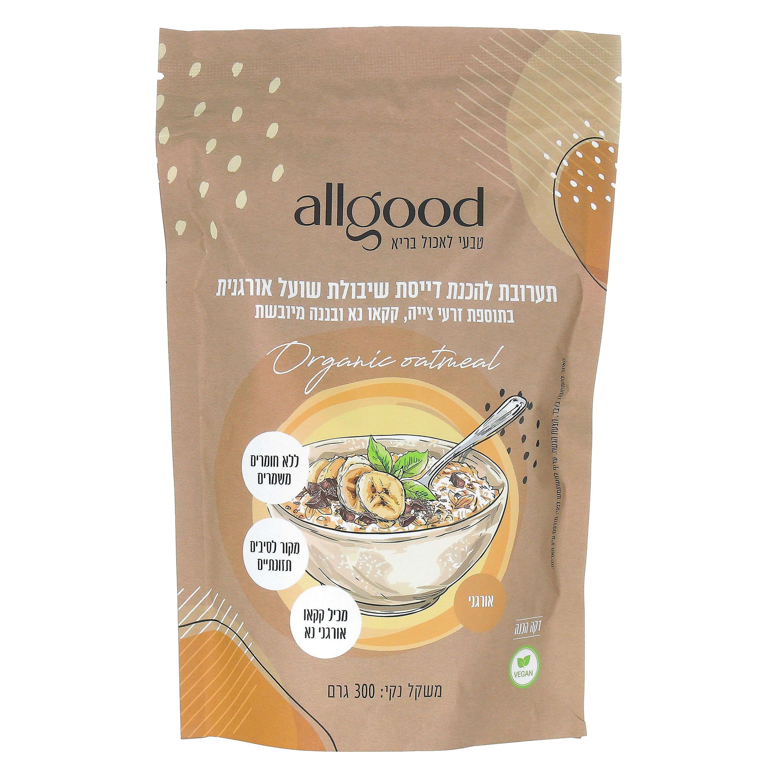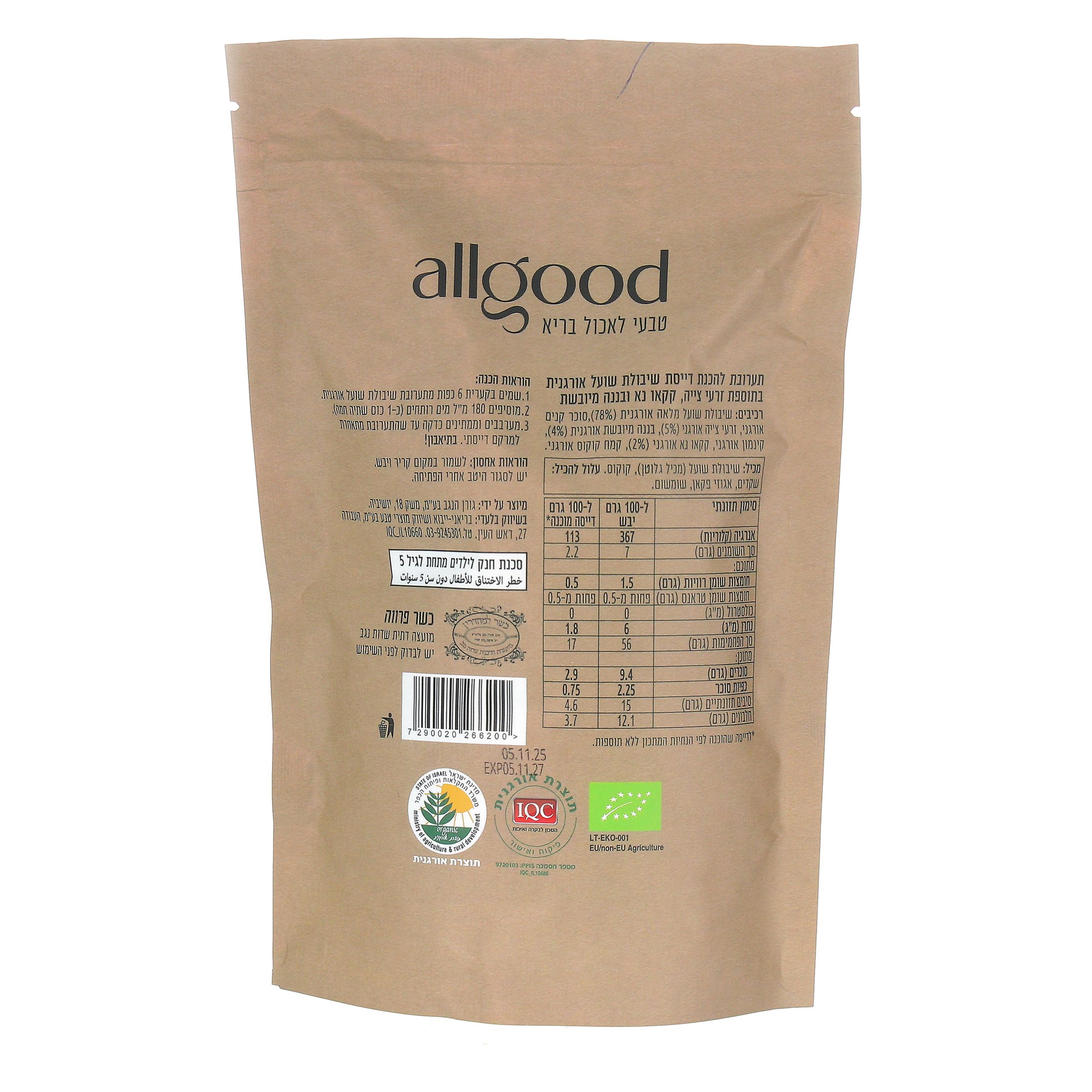 תערובת להכנת דייסת שיבולת שועל עם קקאו, בננה וצ'יה אורגני - אול גוד