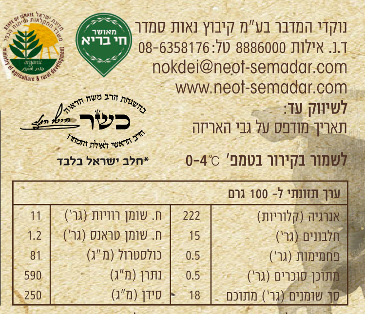 בהשגחת הרב משה דאיה הרב הראשי לאילת והמחוז. * חלב ישראל בלבד