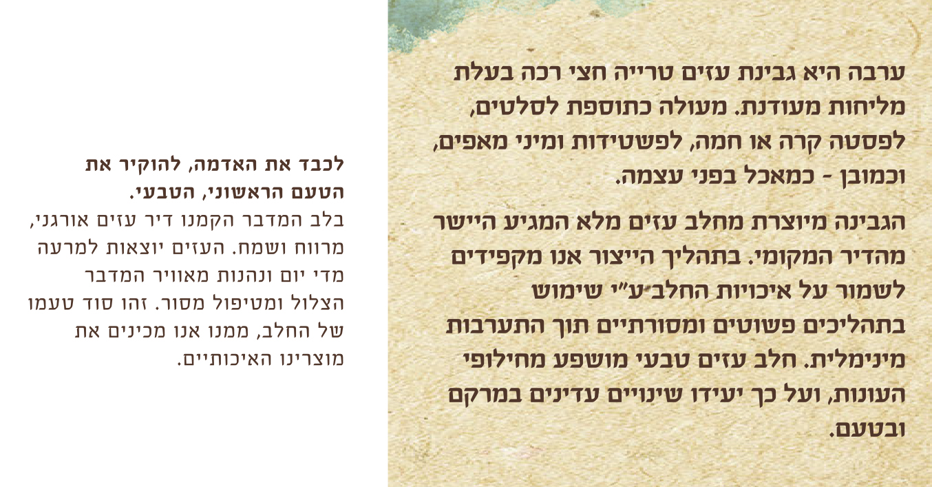 רכיבים: חלב עיזים אורגני מפוסטר, מלח.