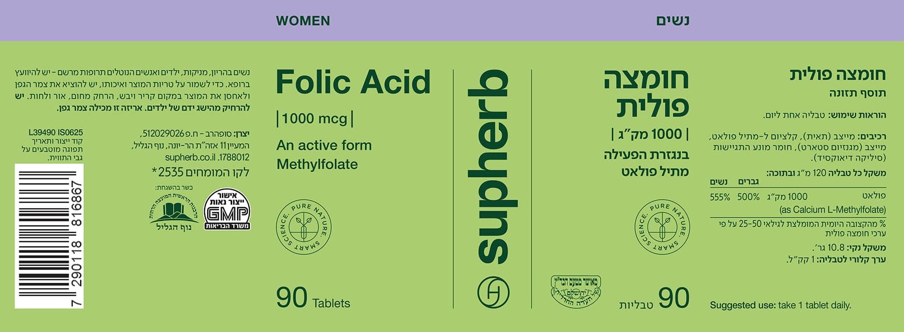 חומצה פולית 1000 מק"ג 90 טבליות - סופהרב