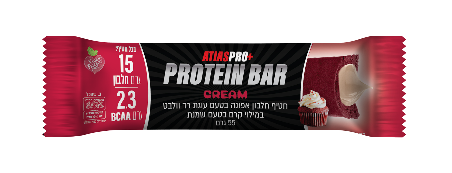 חטיף חלבון אפונה בטעם עוגת רד וולבט במילוי קרם בטעם שמנת 55 גרם - אטיאס פרו
