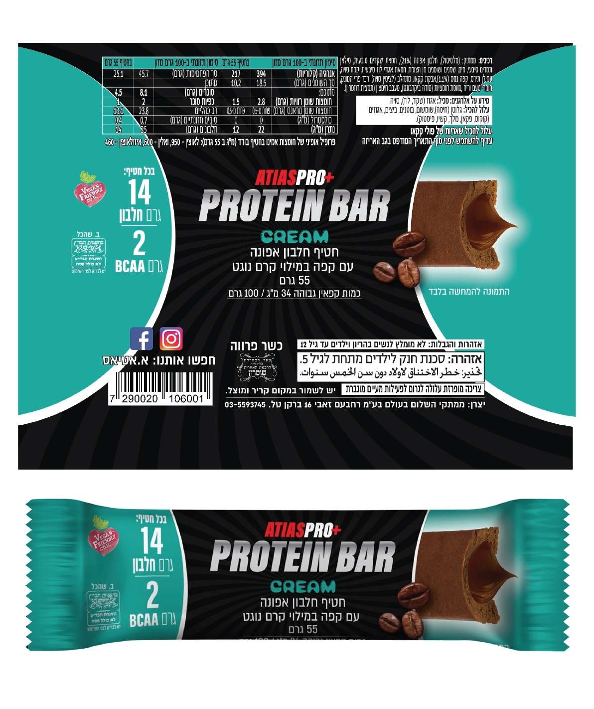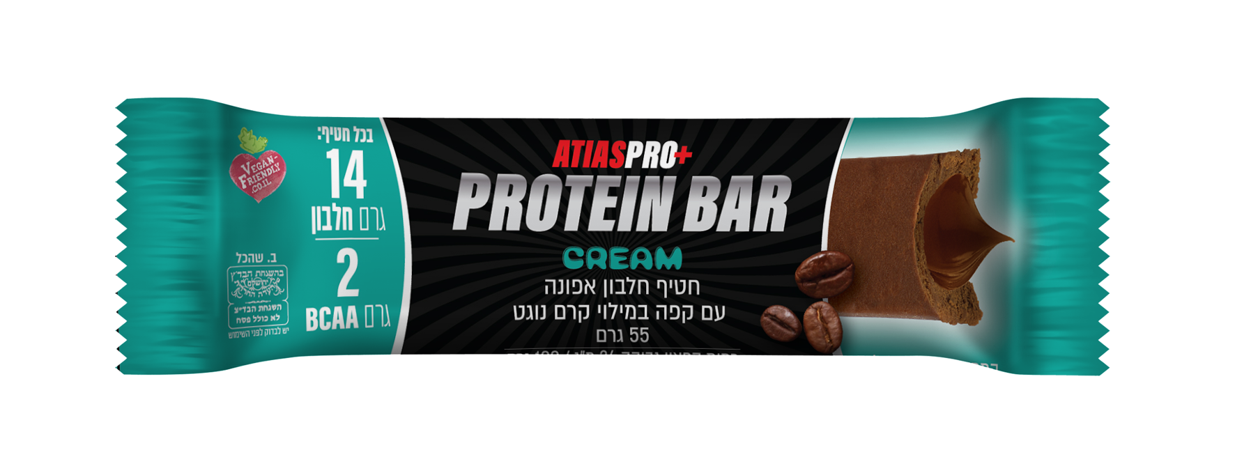 חטיף חלבון אפונה עם קפה במילוי קרם נוגט 55 גרם - אטיאס פרו