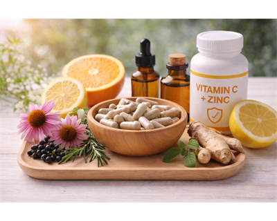 תוספים נפוצים כוללים ויטמין C, ויטמין D, אבץ ותוספים טבעיים נוספים התומכים בתפקוד הגוף.