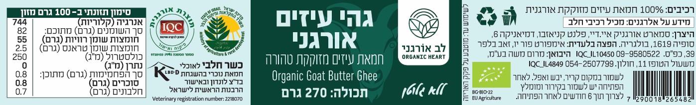 רכיבים: 100% חמאת עיזים מזוקקת אורגנית