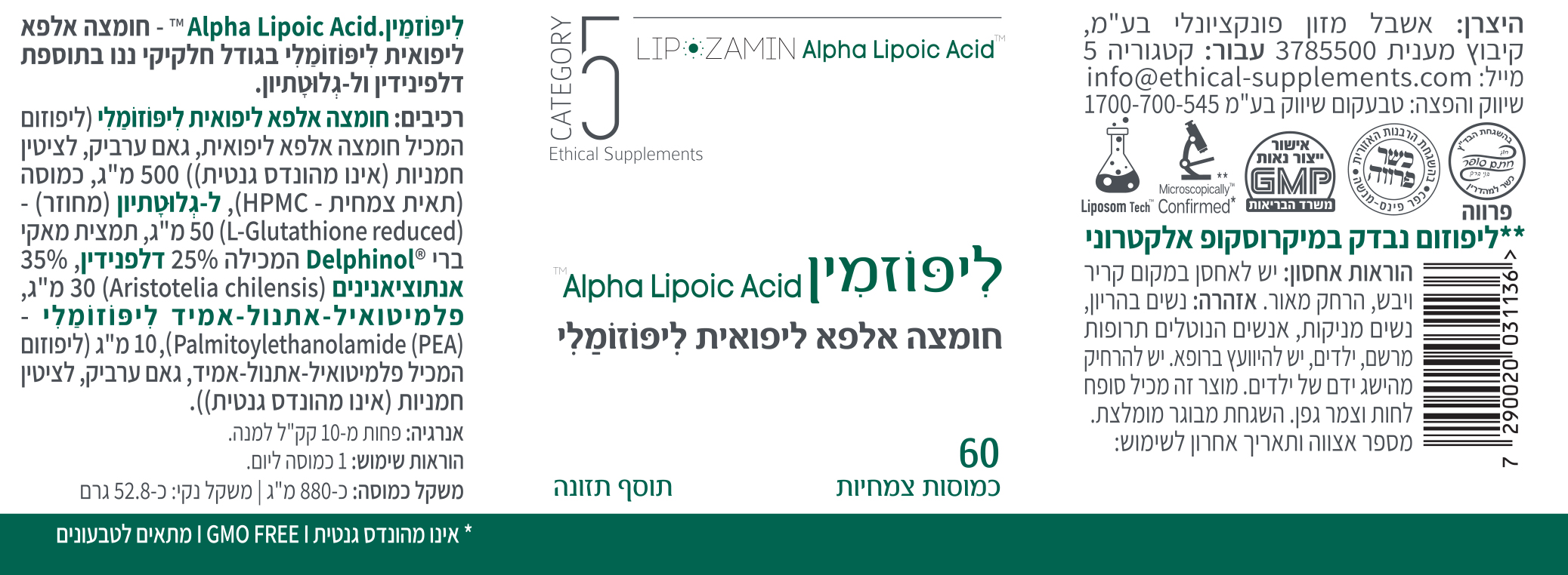ליפוזמין חומצה אלפא ליפואית ליפוזומלי 60 כמוסות צמחיות - קטגוריה 5