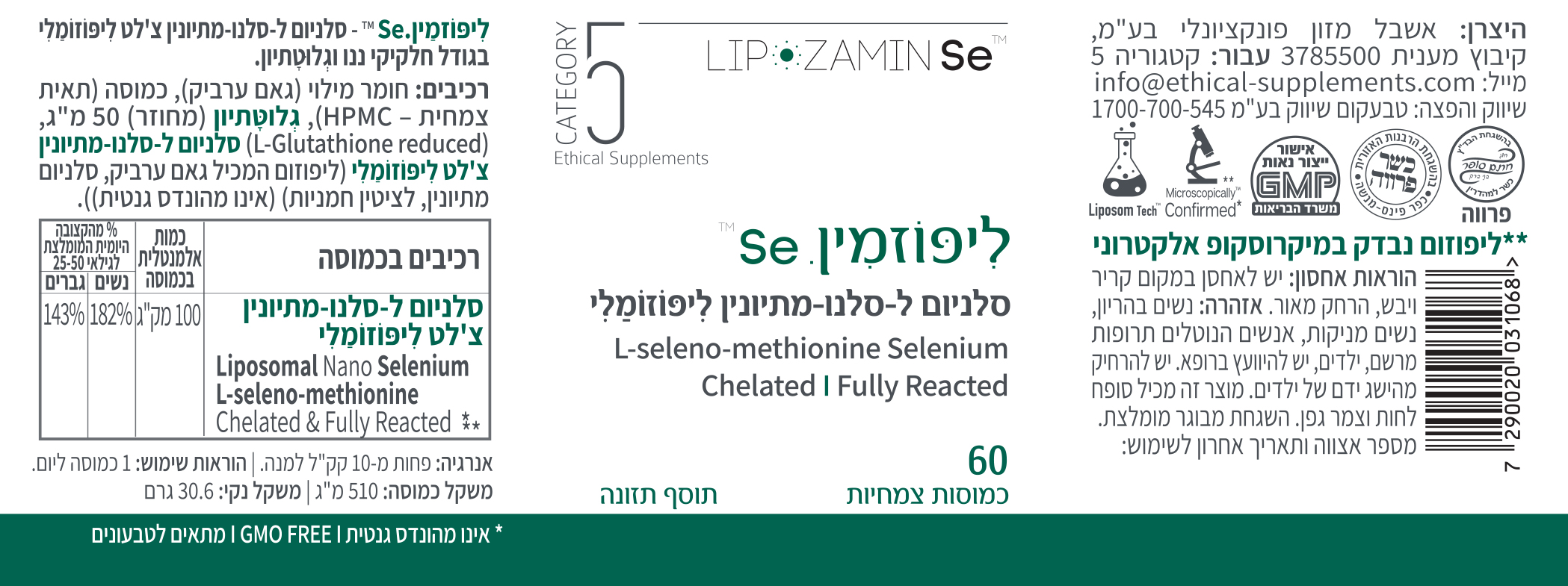 ליפוזמין se סלניום 60 כמוסות - קטגוריה 5
