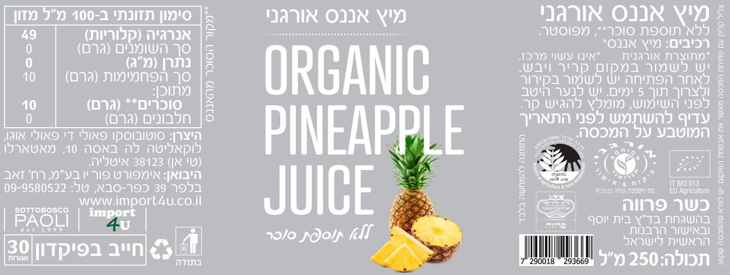 מיץ אננס אורגני 250 מל - סוטובוסקו פאולי