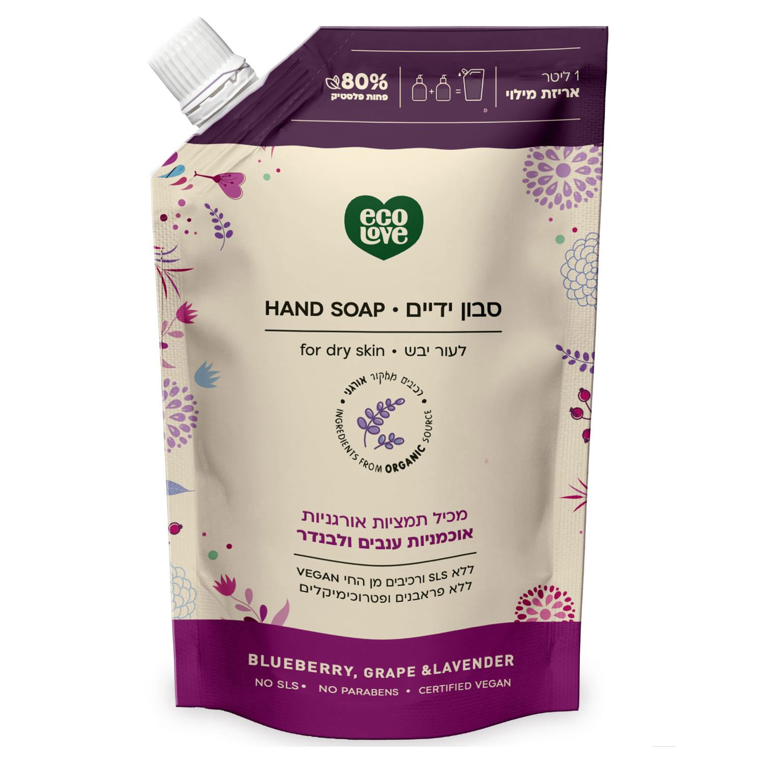 סבון ידיים אריזת מילוי לעור יבש סדרה סגולה - אקו לאב