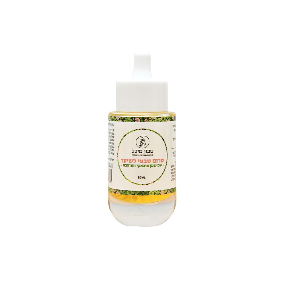 סרום טבעי לשיער עם שמן צובקי וחוחובה 50 מ"ל - מיכל סבון טבעי