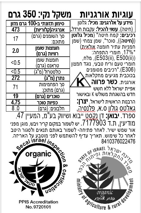 * רכיבים מסומנים בכוכבית מגיעית מחקלאות אורגנית.