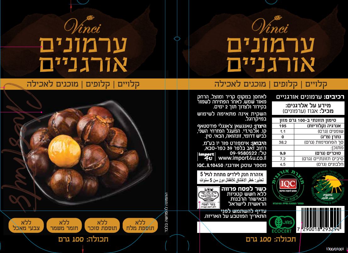 ערמונים אורגנים קלויים וקלופים 100 גרם - וינאי