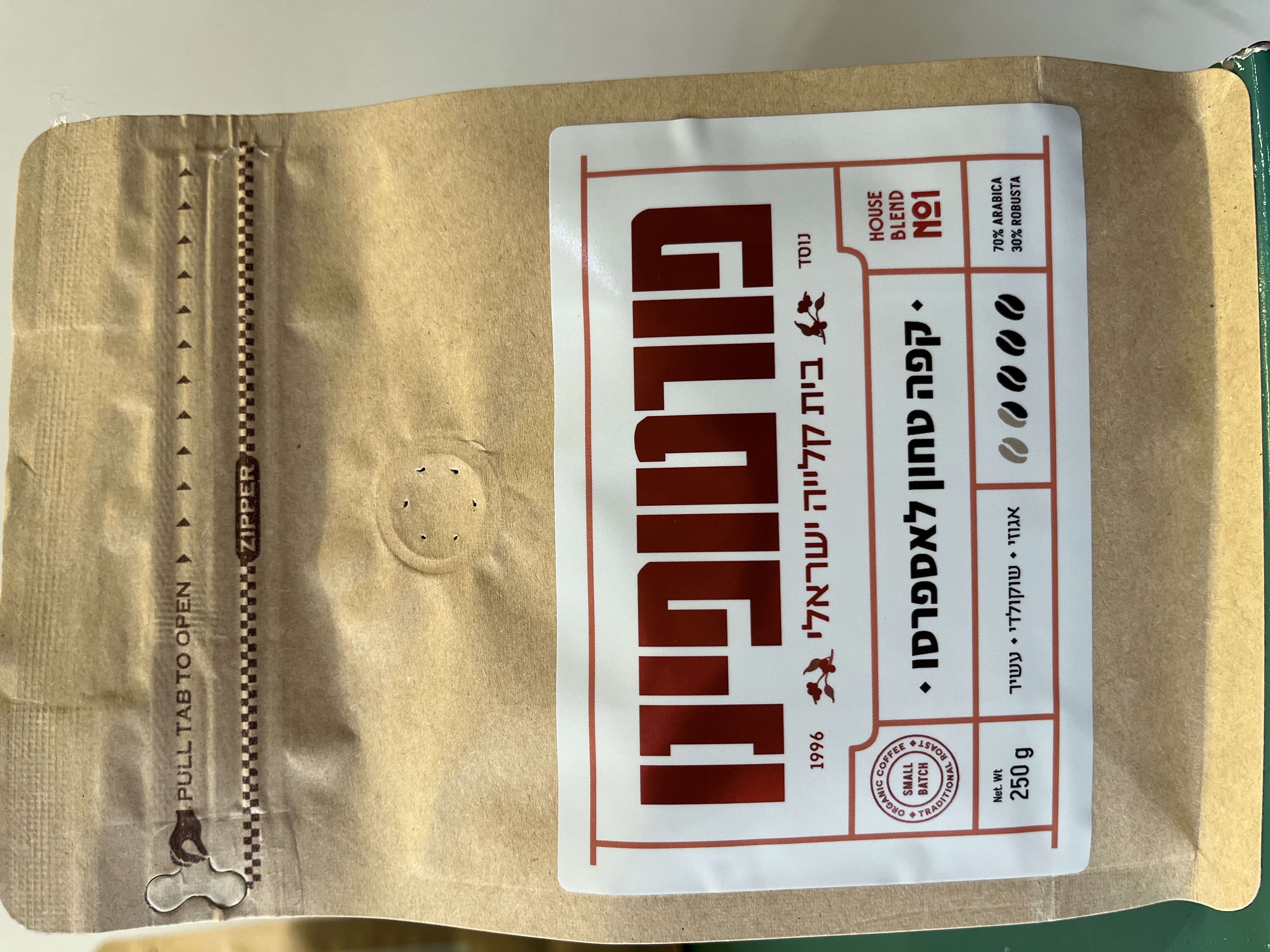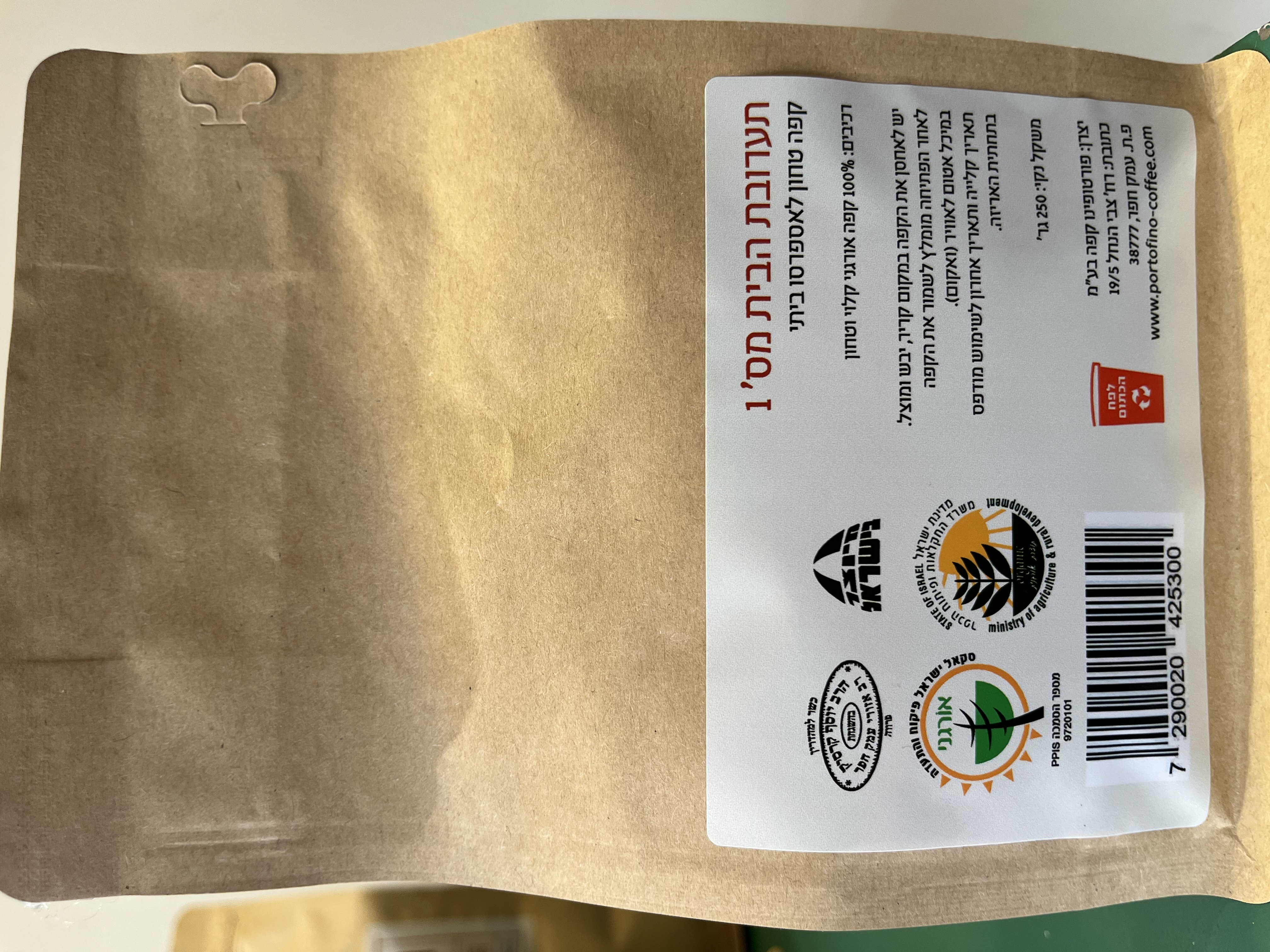 קפה אורגני טחון לאספרסו מבית "תערובת הבית מס' 1" – תערובת איכותית של 100% פולי קפה אורגני קלוי וטחון, המתאימה במיוחד להכנת אספרסו עשיר ומאוזן. הקפה נטחן בדרגת טחינה אידיאלית למכונות אספרסו ומספק ארומה עמוקה, גוף מלא וטעם מודגש עם סיומת נעימה. מומלץ לאחסן במקום קריר, יבש ומוצל. לאחר הפתיחה יש לשמור בכלי אטום לאוויר ולצרוך בסמוך לפתיחה לשמירה על הטריות והארומה. משקל נקי: 250 גרם.
