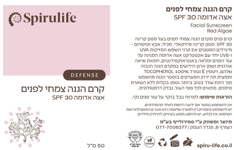 קרם הגנה צמחי לפנים אצה אדומה 30 SPF-ספירולייף