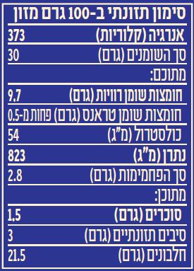 גבינה צהובה (30%), גבינת מוצרלה (29%), שקדים,ביצים, זיתים ירוקים (5%),
