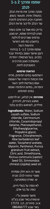 שמפו ומרכך 2 ב-1 בניחוח רענן שיוצר ועוצב במיוחד עבור כלבים. בעל פורמולה ייחודית המשלבת מגוון מרכיבים המעניקים לחות.