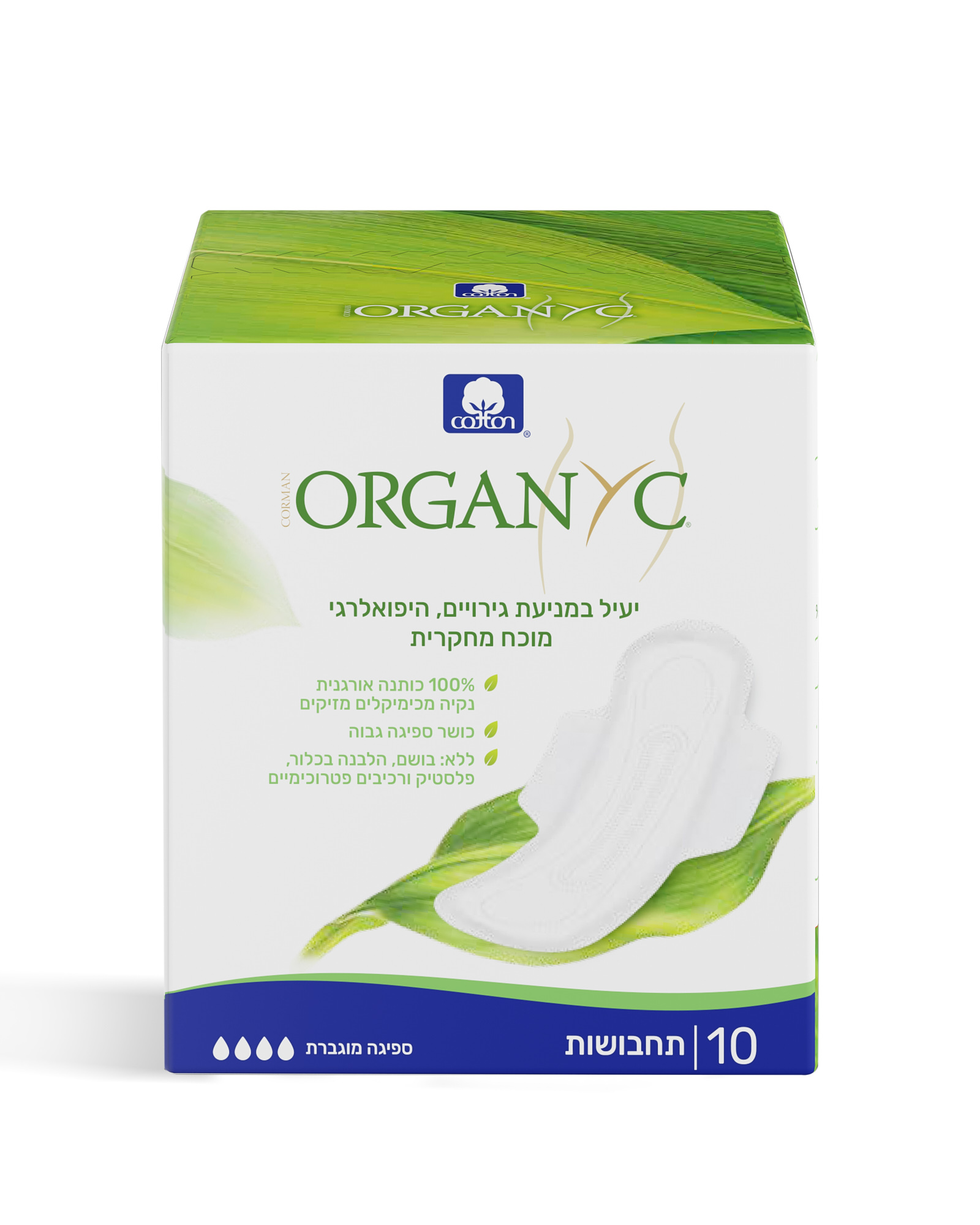 זרימה מוגברת – לנשים עם דימום מוגבר או לימי מחזור עם דימום מוגבר. 100% כותנה אורגנית הן בשכבה העליונה הבאה במגע עם העור והן בשכבה הפנימית. (היחיד בארץ) סיבי הכותנה האורגניים הינם ידידותיים לעור, נושמים ובעלי PH נייטרלי. גניקולוגים ממליצים על מוצרי כותנה טהורה לשמירה על האוורור והאיזון הטבעי באזור האינטימי.